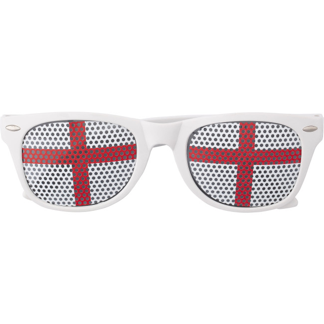 Occhiali da festa in plexiglass. Bandiera del paese sulle lenti.
