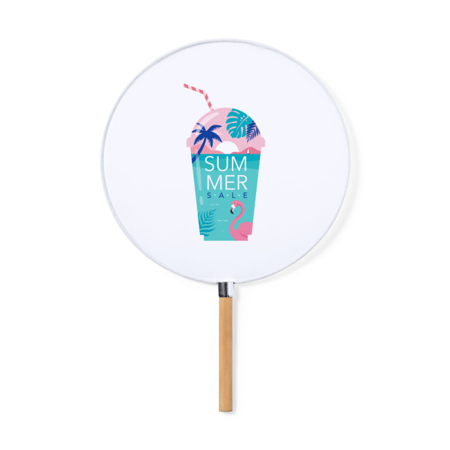 Elegante Pai Pai in resistente poliestere realizzato appositamente per la sublimazione. Con manico in bambù e dettagli cromati.