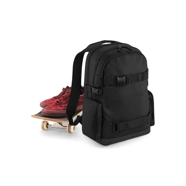 100% poliestere 600d. Zaino con compartimento per laptop fino a 17", fasce frontali, compartimento interno, tasca frontale e tasche laterali con cerniera. Dimensioni: 36 x 46 x 16 cm, capacita': 23 litri, area di stampa: 23 x 14 cm.