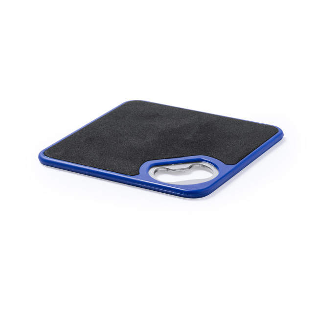 Originale sottobicchiere con apribottiglia in metallo integrato in una ampia varietà di colori vivaci. Con superficie antiscivolo sulla base.