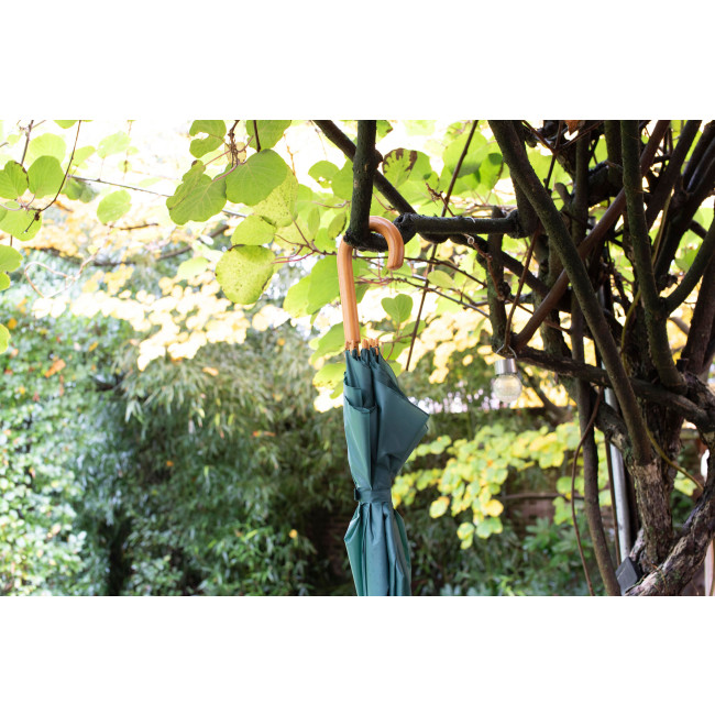 Ombrello classico con apertura automatica, manico in legno, chiusura con velcro, in poliestere 190 T
