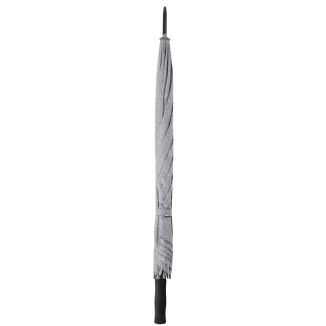 Ombrello Estaro di alta qualità con diametro di 130 cm, realizzato in poliestere 150D in elegante tonalità grigio erica. Dotato di apertura automatica, aste in fibra di vetro antivento e chiusura in velcro, è presentato in una borsa riciclata per un tocco ecologico.