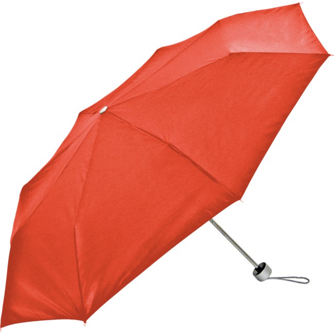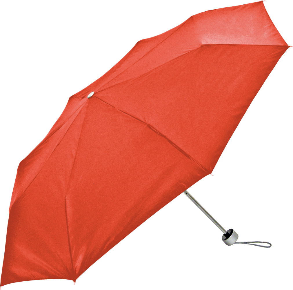 Ombrello richiudibile, con custodia. Manico in plastica color silver. Apertura manuale, confezione in nylon.