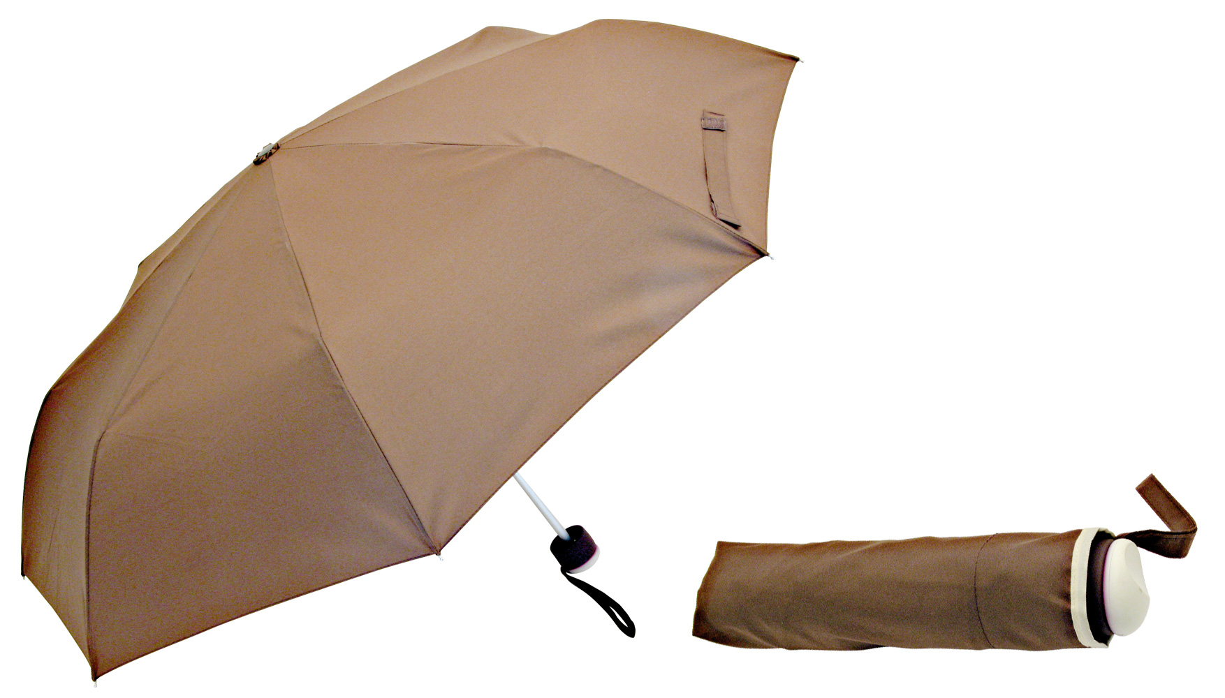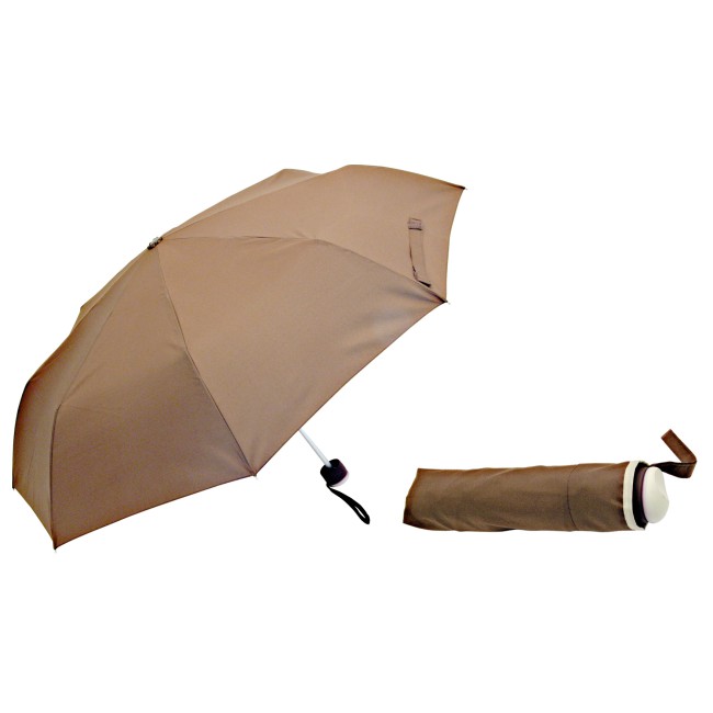 Ombrello pieghevole colorato 3 sezioni, 8 spicchi. Manico gommato colorato come ombrello, asta in alluminio. Astuccio coordinato.