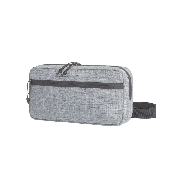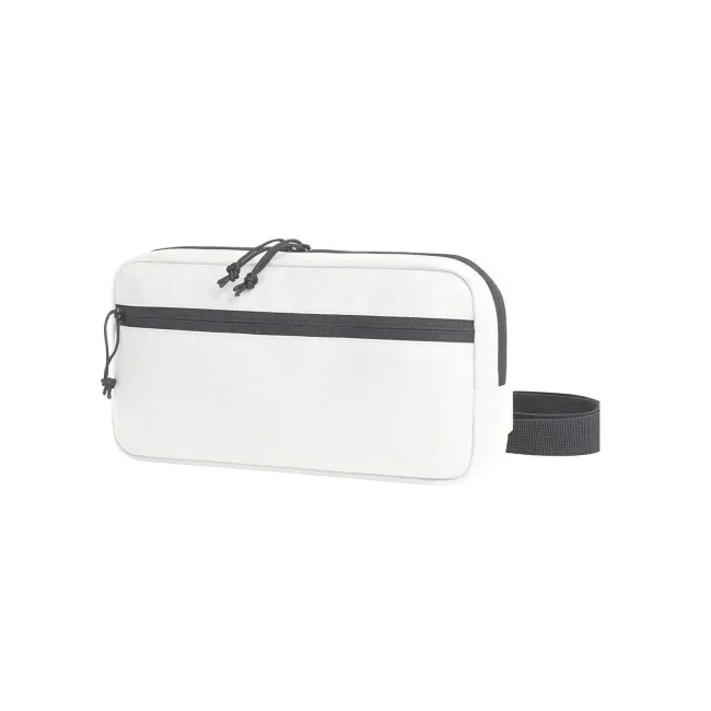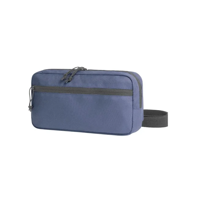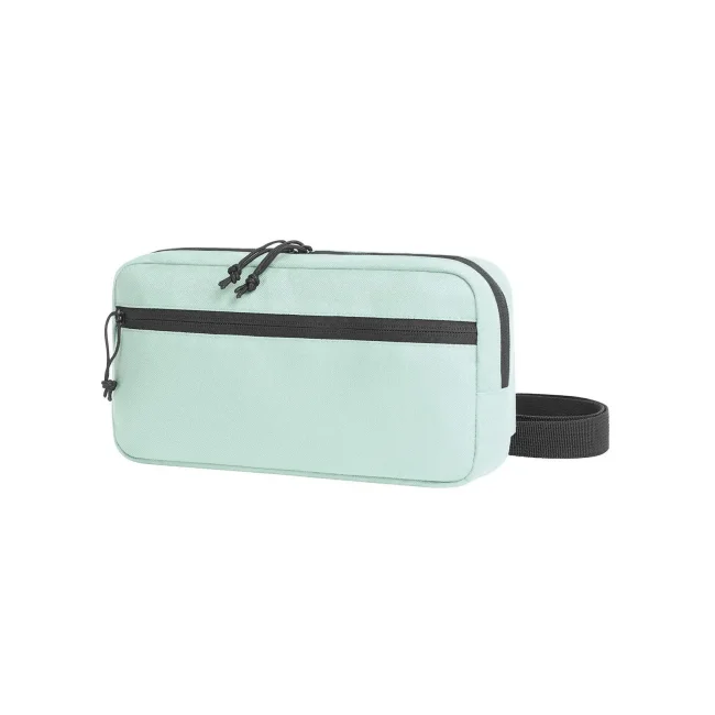 100% poliestere. Tracolla con scomparto principale con cerniera a 2 vie e scomparto interno con chiusura lampo, tasca anteriore con chiusura lampo, imbottitura sul retro, cinturino addominale chiudibile sul lato e di lunghezza regolabile. Dimensioni: 27x14x5 cm. Area personalizzabile: sulla tasca frontale 21x4,5 cm.