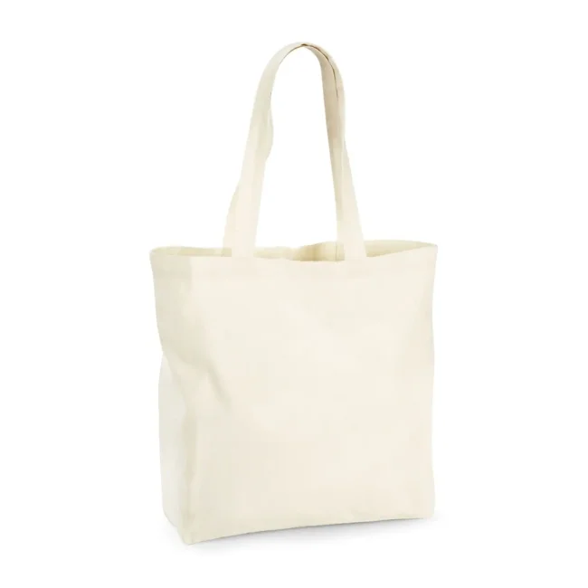 100% Cotone Organico - Certificato GOTS. Shopper in cotone di altissima qualità, grande capienza, può essere portata a mano o in spalla, lunghezza del manico - 58cm. Etichetta removibile. Dimensioni 35x39x13,5 cm. Capacità 18 litri. Area di stampa 30x33 cm.