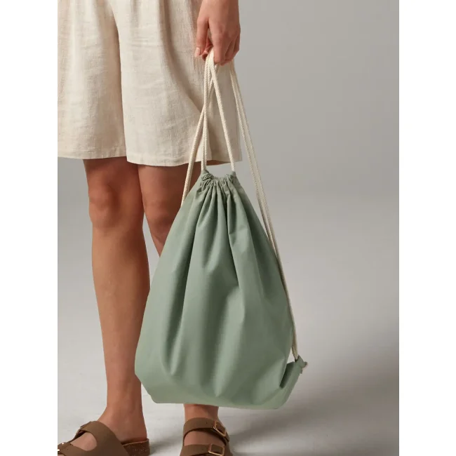 100% cotone organico. Sacca in cotone organico Inco. certificato GOTS -CU811033, chiusura con cordoncini, con attaccatura esterna cordini per una personalizzazione più semplice. Dimensioni: 37x46 cm. Capacità: 12 litri. Area stampabile: 30x32cm massimo. Etichetta strappabile.