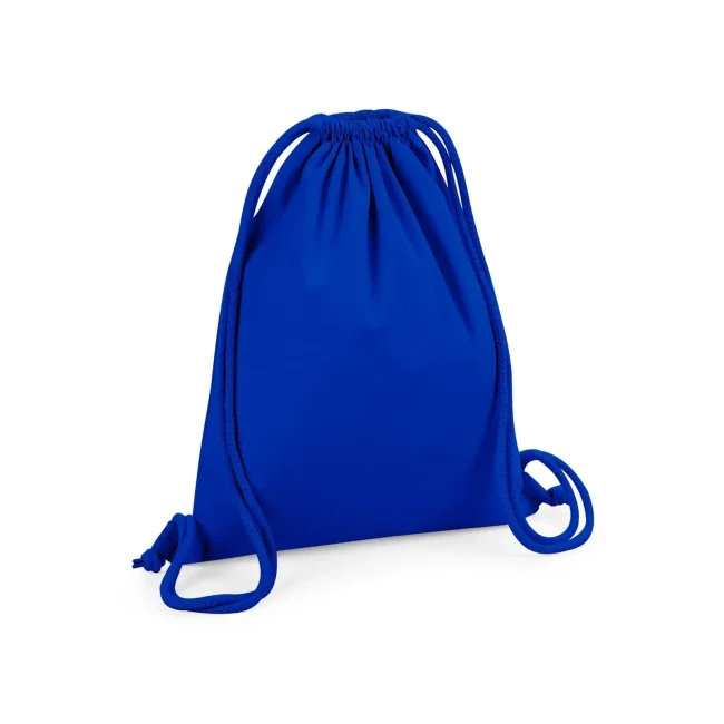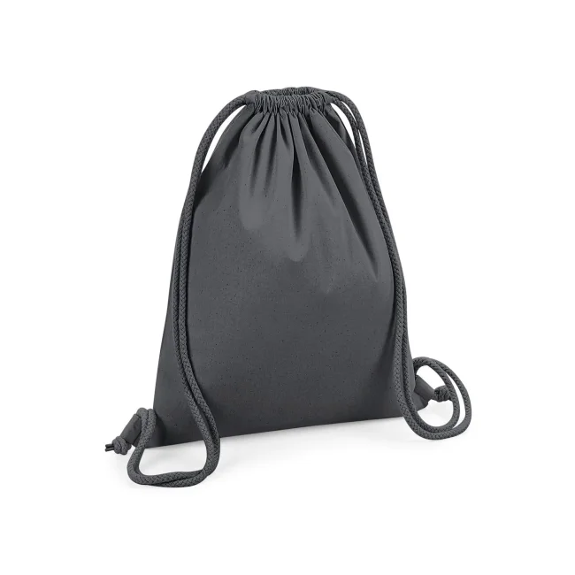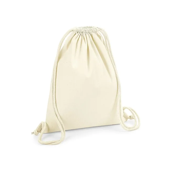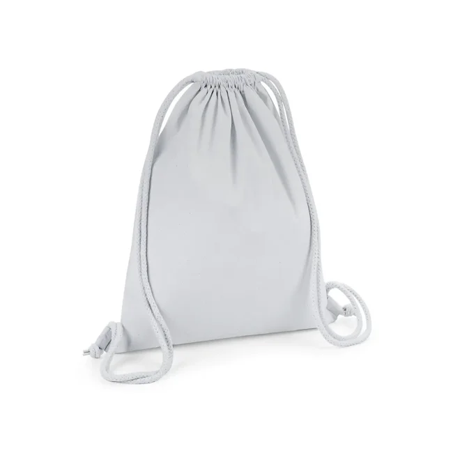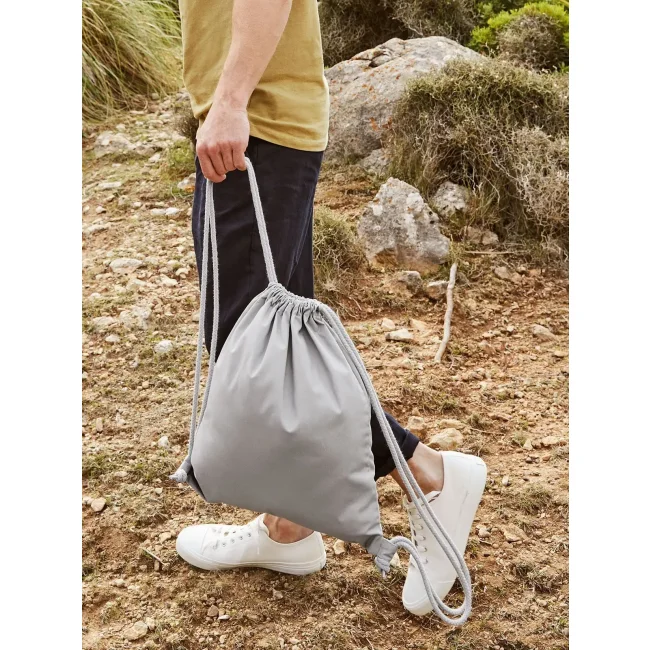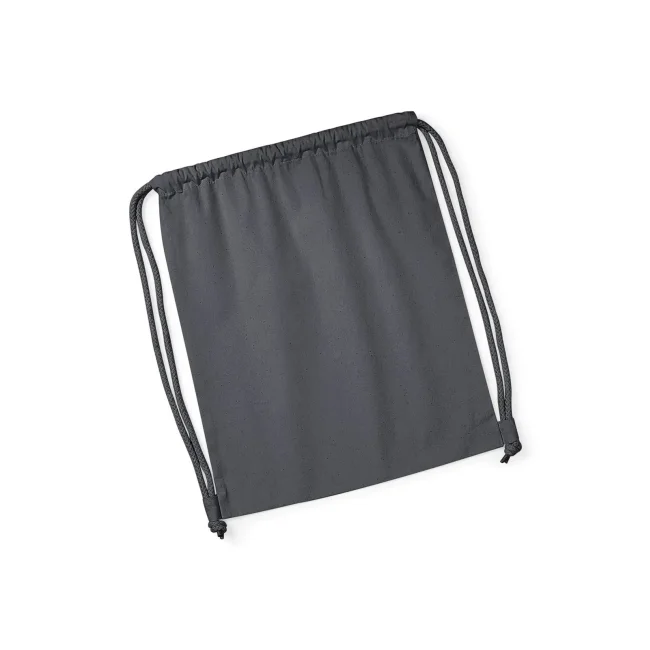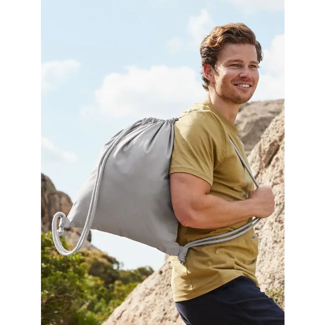 100% cotone organico. Sacca sportiva in cotone certificato, ampia superficie di stampa, attaccature esterne per facilitare la decorazione, chiusura con cordoncino. Etichetta removibile. Dimensioni 37x46 cm, capacità: 12 litri, area stampabile: 30x22 cm.