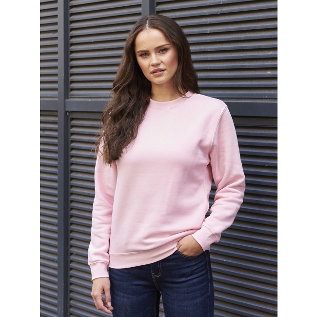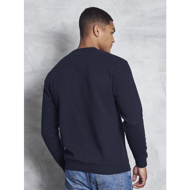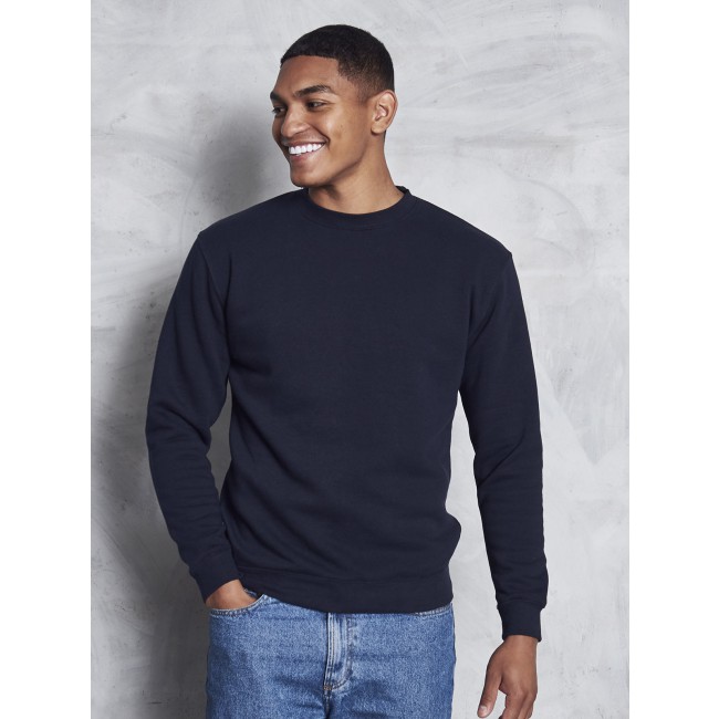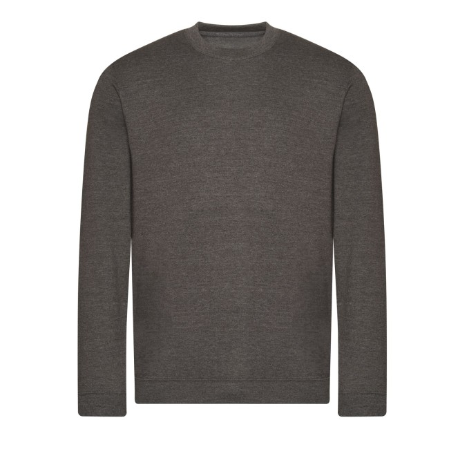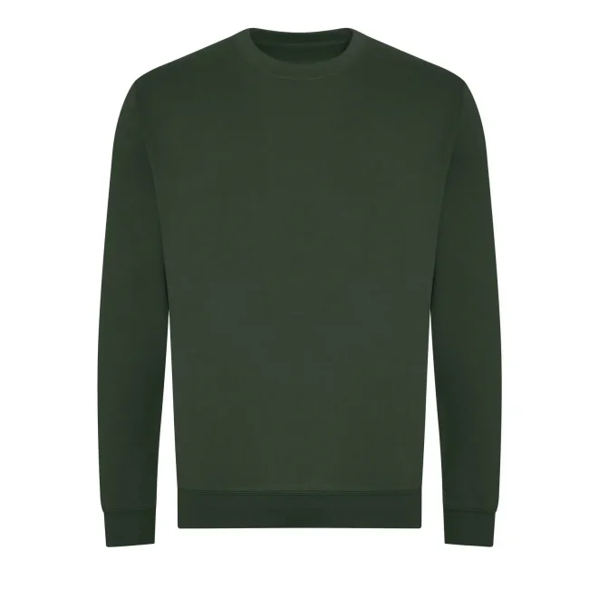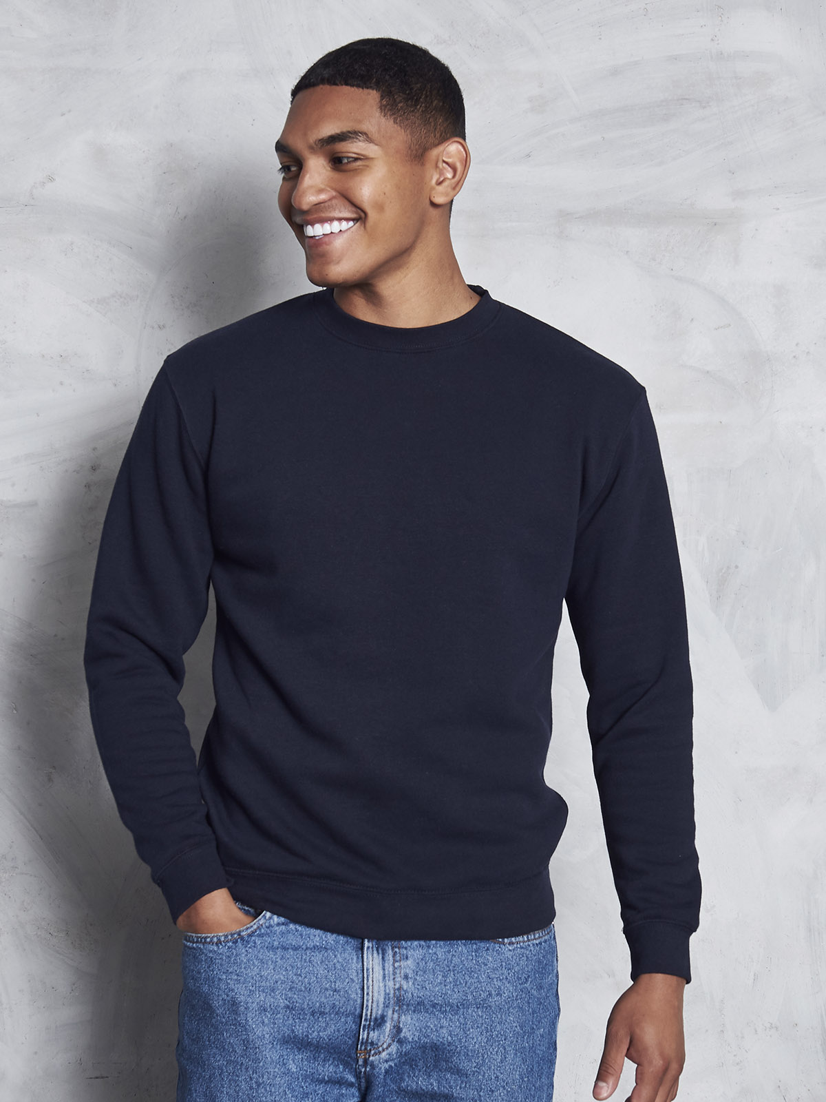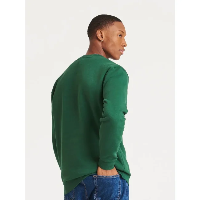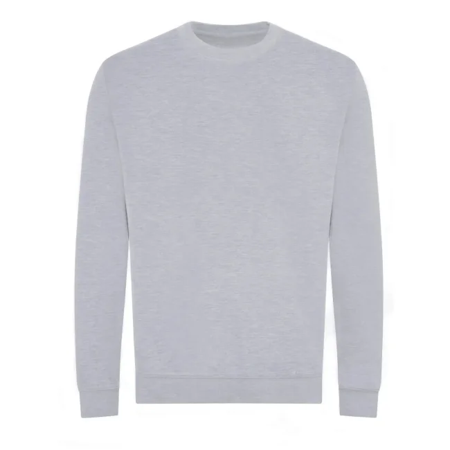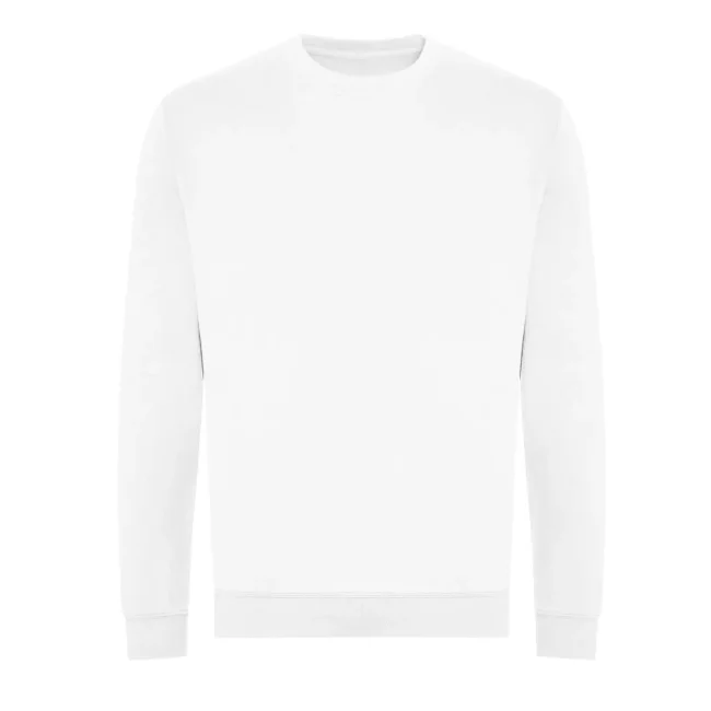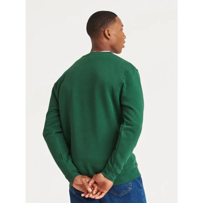 80% cotone organico, 20% poliestere riciclato. Felpa girocollo con maniche set-in, nastro di rinforzo sul collo, cuciture doppie, orlo e polsini a costine, felpata internamente, etichetta strappabile. (Col. HGR: 75% cot. 15% pol.)