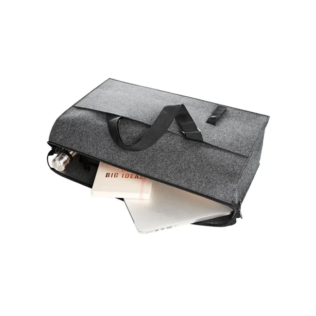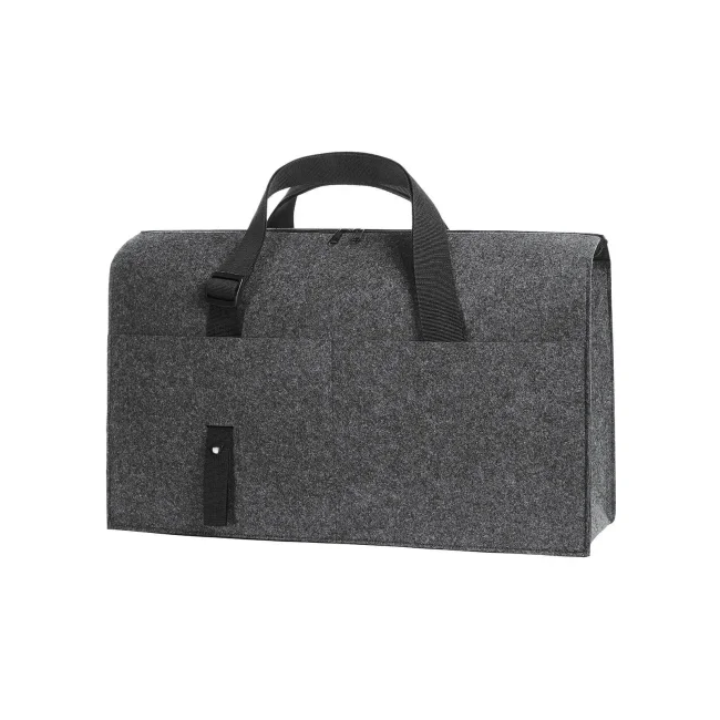 Feltro in PES riciclato. Feltro in PES riciclato. Organizer ben attrezzato, ampio scomparto principale con chiusura lampo bidirezionale, tasca a inserto porta-documento, ampia tasca a inserto con chiusura lampo, due passanti di fissaggio, tre tasche a inserto interne, tre tasche a inserto esterne, tracolle di lunghezza regolabile, linguetta di fissaggio.