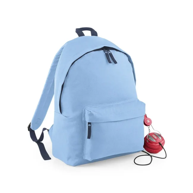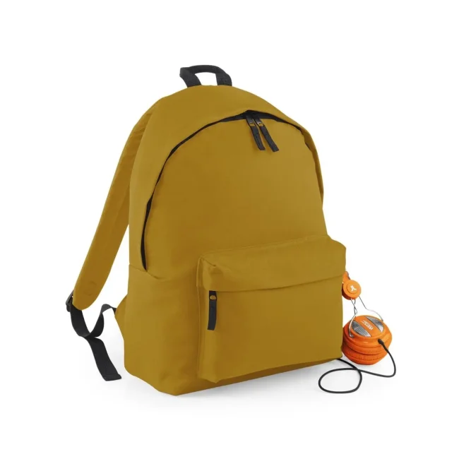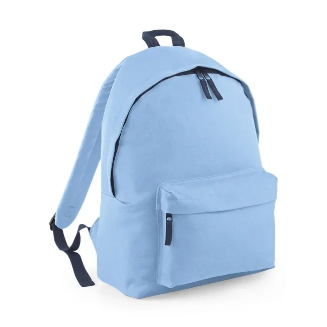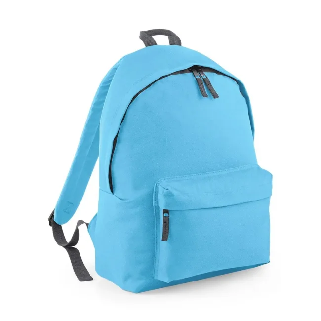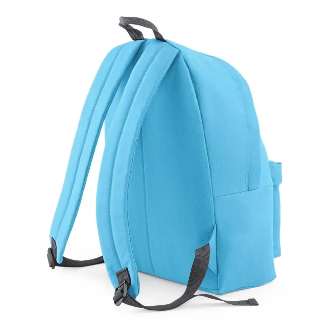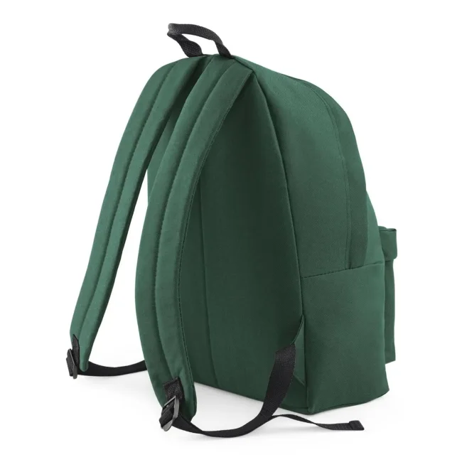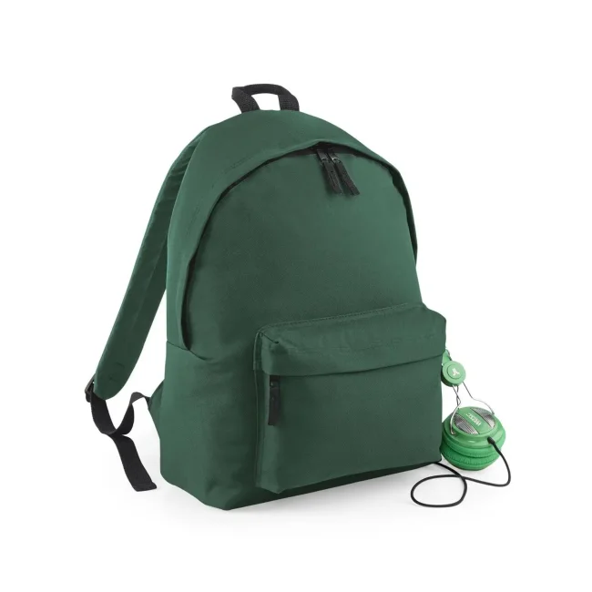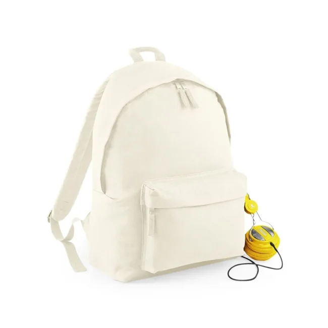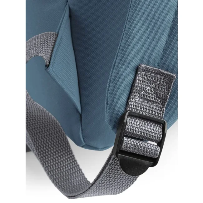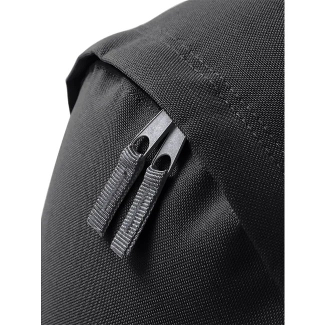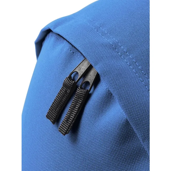 100% poliestere 600d. Zaino con tasca frontale con cerniera, schienale imbottito e gancio per presa a mano. Dimensioni: 31 x 42 x 21 cm, capacita': 18 litri, area di stampa: 20 x 15 cm.