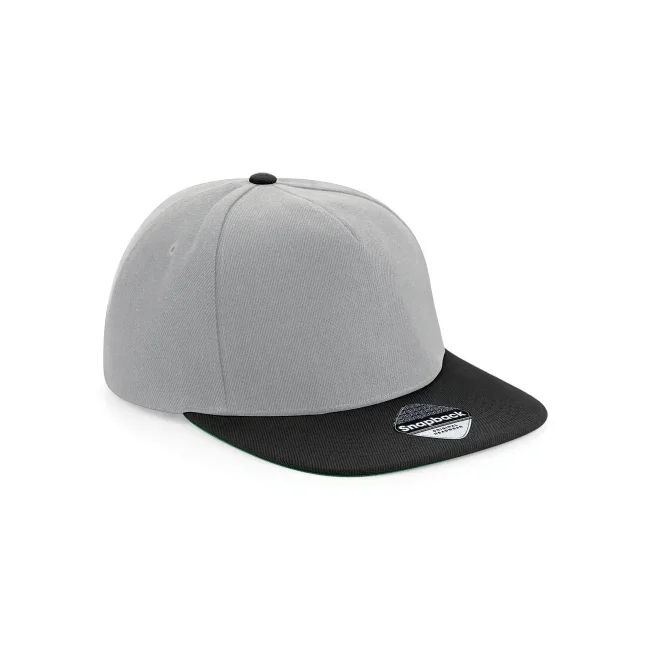 100% poliestere twill. Cappellino a 5 pannelli con visiera piatta, sotto visiera verde, (solo nel colore BLKBB sotto visiera nero) regolazione con snapback, etichetta removibile, taglia unica.