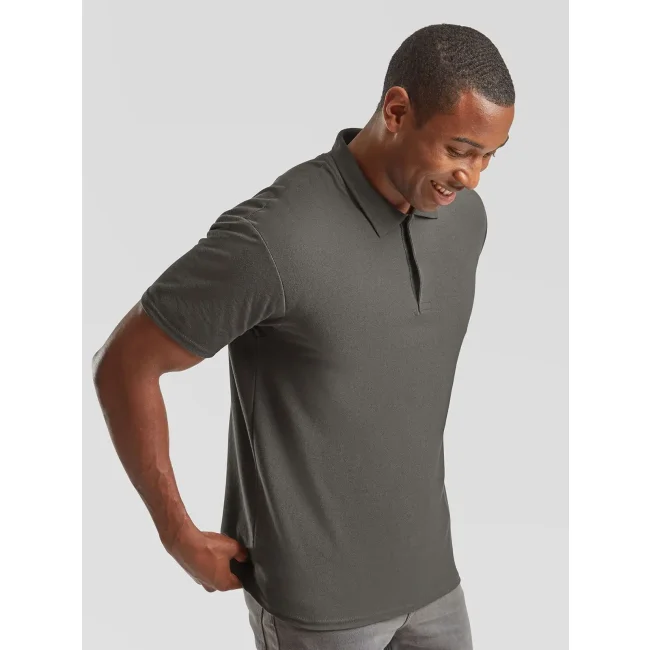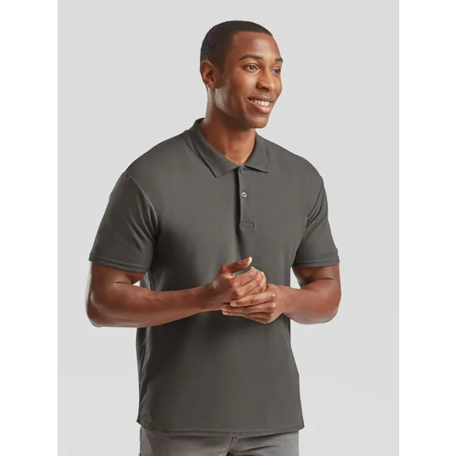 100% cotone. Polo piqué a manica corta con vestibilità classica e cuciture laterali, pattina a 2 bottoni tono su tono, maniche senza polsino, etichetta strappabile. (Heather Grey: 97% cot. 3% pol.)