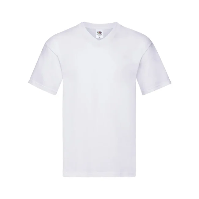 100% cotone. T-shirt manica corta set-in, scollo a V in costina, nastro di rinforzo alle spalle, tessitura compatta per una migliore stampabilità, struttura tubulare. Col. 94: 97% cot. 3% pol. (Col. 30: 135 g/m²).