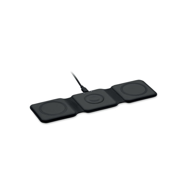 Base di ricarica pieghevole 3 in 1 in ABS con 3 punti di ricarica wireless. Ingresso: 2-in-1 Tipo-C e Tipo-A.