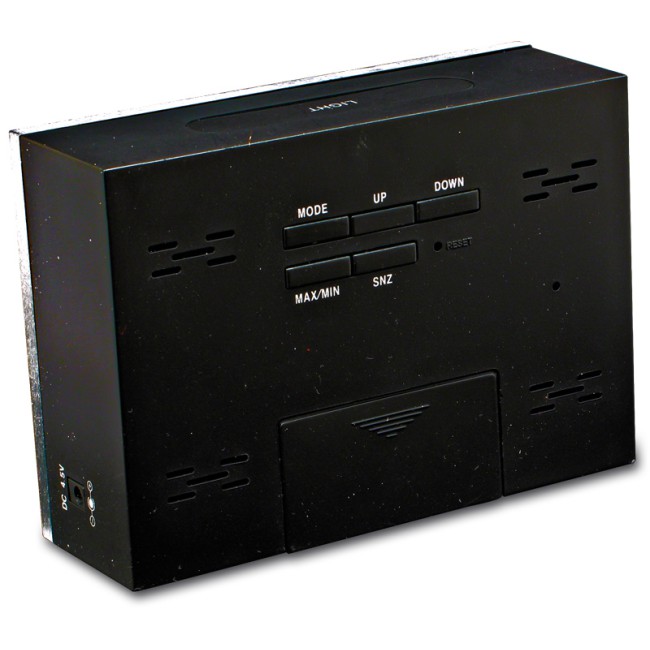 Orologio sveglia multifunzione con le seguenti caratteristiche. Indicatore temperatura ed umidit?. Funzione barometro con indicazione delle previsioni meteorologiche. Funzionamento a batteria (2xAAA) non incluse. Confezione in scatola.