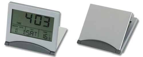 Sveglia ultrapiatta silver/grigio scuro,completa di ora,data,giorno,temperatura
