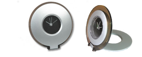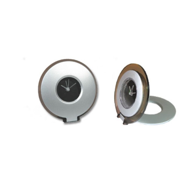 Orologio sveglia da viaggio in plastica silver nero. Batteria inclusa.Scatola confezione silver.
