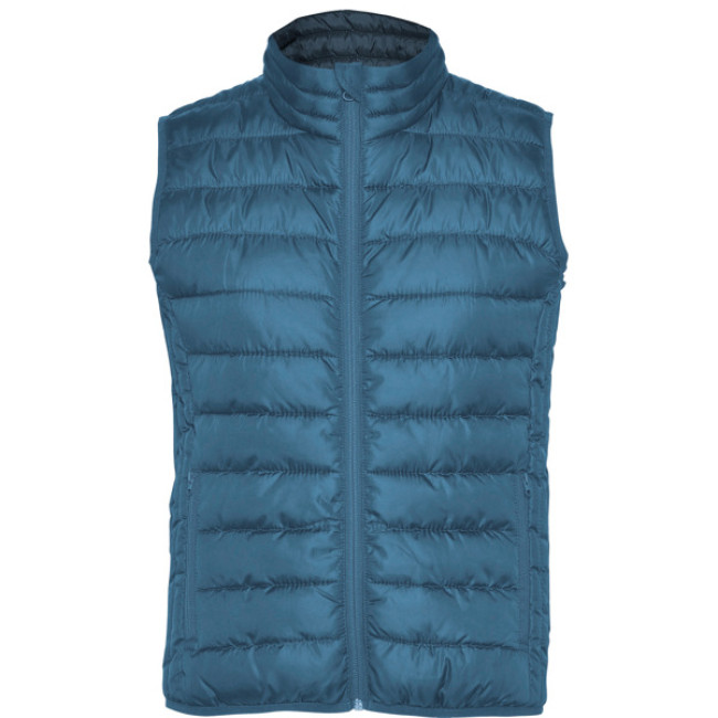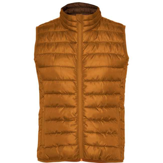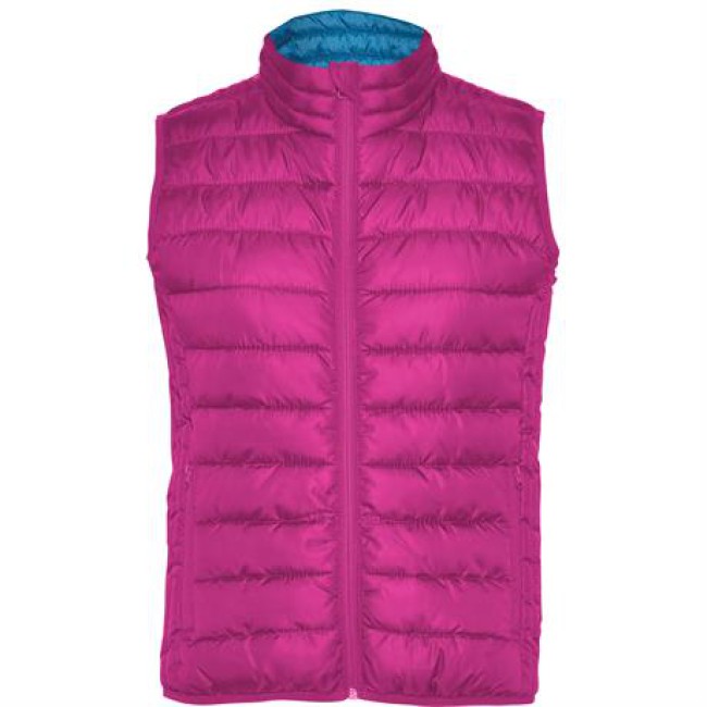 Gilet trapuntato aderente con imbottitura tatto piuma. Cerniere invertite in tinta con protezione per il mento e tirante. Due tasche laterali con cerniera.Orlo elaticizzato su girovita e giromanica.Rivestimento interno a contrasto.Indumento leggero e pieghevole.