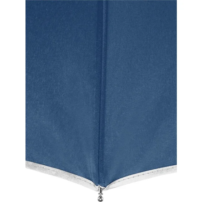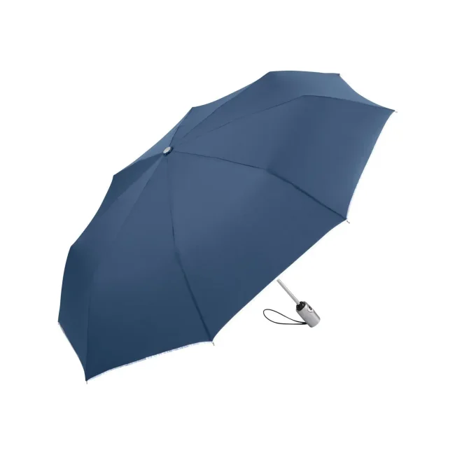 Bordatura Reflex conf. a EN ISO 20471 per una migliore visibilità nel traffico, stecche in fibra di vetro flessibili, confortevole doppia funzione automatica per un'apertura e chiusura rapida, pregiato sistema Windproof per una flessibilità massima del telaio in caso di forti raffiche di vento, manico con finitura in alluminio con pulsante di azionamento piatto con possibilità di applicazione della pubblicità. Diametro: 105 cm, lunghezza da chiuso: 30 cm, 8 pannelli.