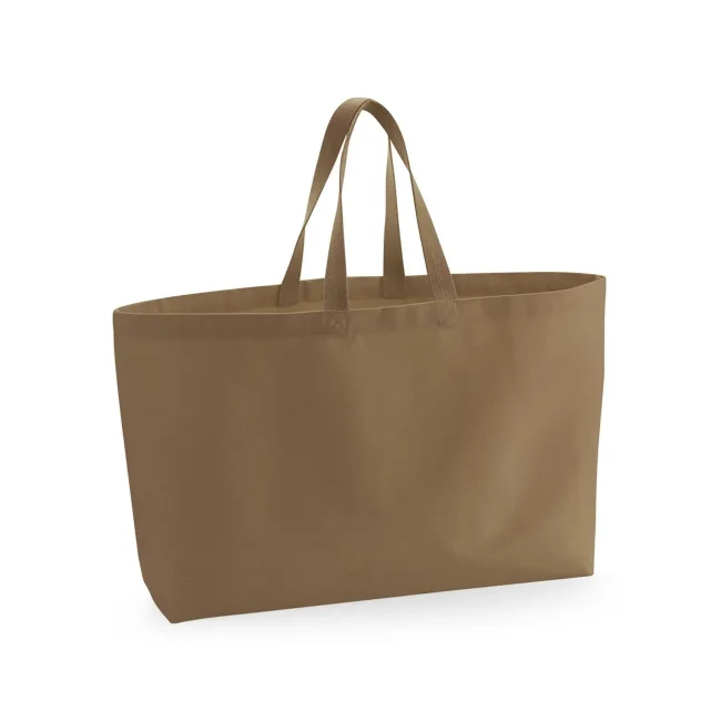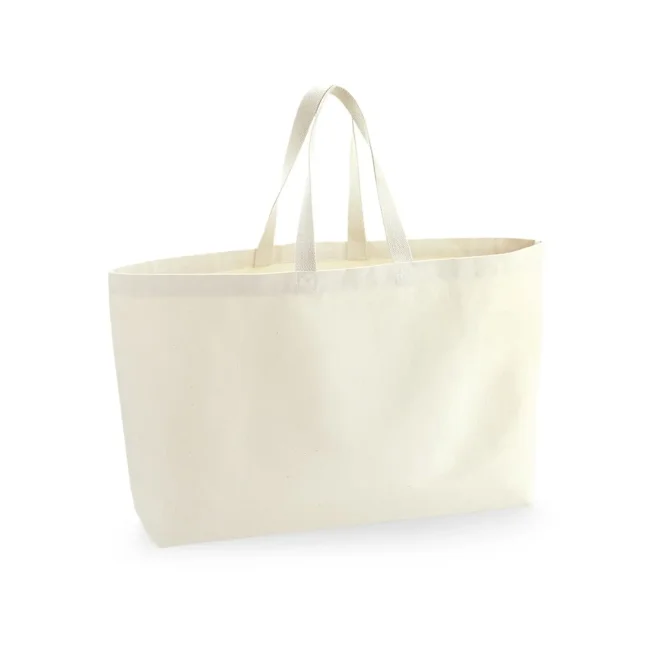 100% cotone canvas. Borsa oversize con struttura in canvas resistente. Maniglie in morbido tessuto per il massimo comfort. Può essere portata a mano o in spalla. Etichetta removibile. Lunghezza manici: 61cm. Dimensioni: 56x41x16cm. Capacità: 37litri. Area stampabile: 54x33cm.