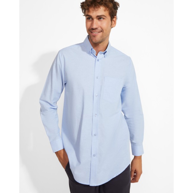 Camicia a maniche lunghe· Tasca anteriore sinistra. · Polsino con pence e due bottoni.