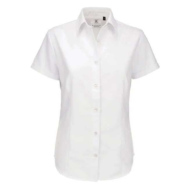 70% cotone pettinato, 30% poliestere. Camicia da donna in tessuto oxford dal taglio femminile leggermente sfiancato. Bottoni cuciti a croce con effetto madreperla, asola orizzontale per l'ultimo bottone e un bottone di riserva.