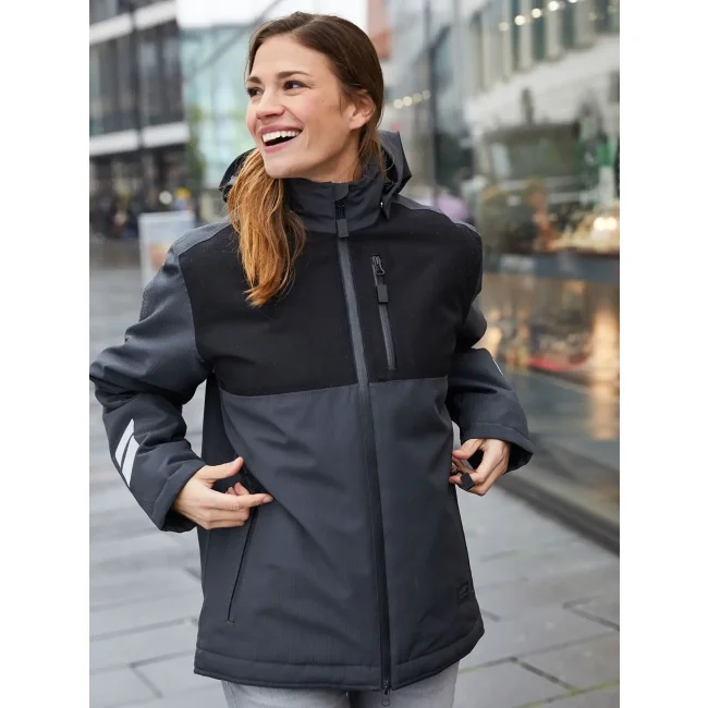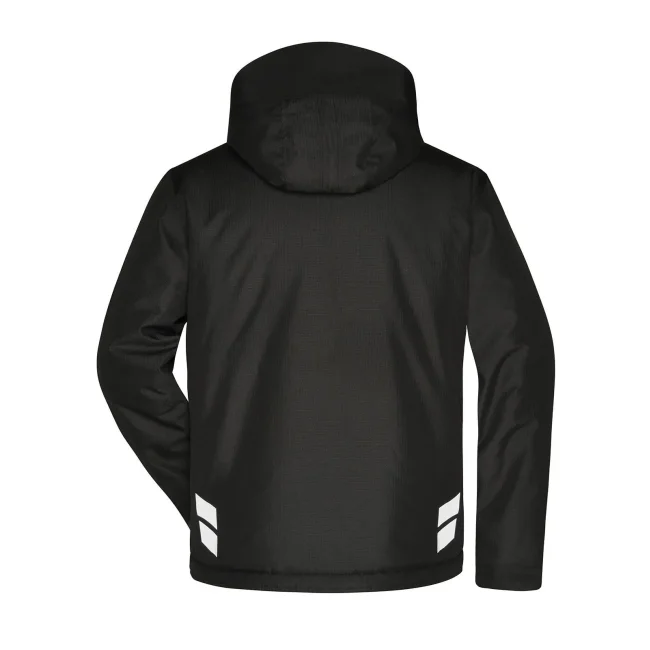 100% poliestere riciclato. Rivestimento: 100% pol. ric. Imbottitura: 100% pol. Giacca da lavoro antivento, idrorepellente e traspirante, imbottitura DuPont Sorona (10.000mm colonne), traspirante e permeabile al vapore acqueo (5,000 g/m2/24h), colletto alto, cappuccio removibile, dettagli riflettenti (no DPI), zip: YKK.