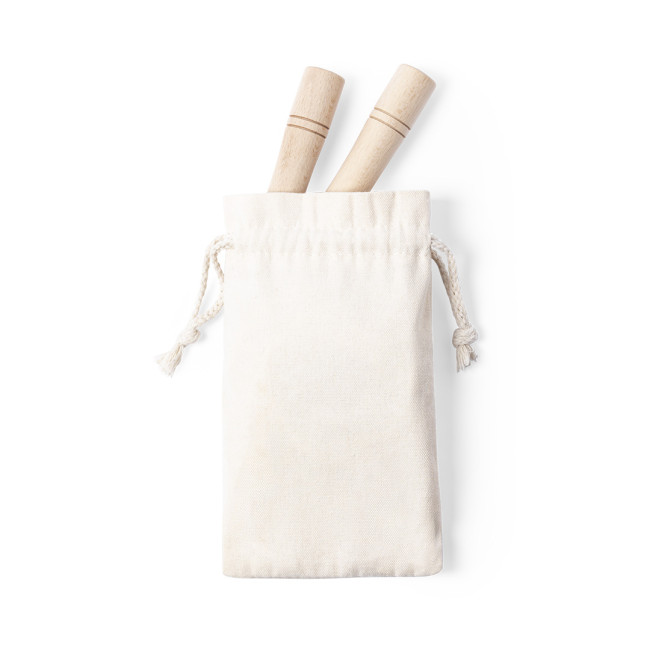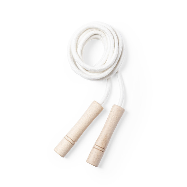 Corda della linea Natura, extra lunga da 3 metri in cotone naturale. Manici ergonomici in resistente legno di faggio. Confezionata in un fodero di cotone naturale con chiusura a coulisse.