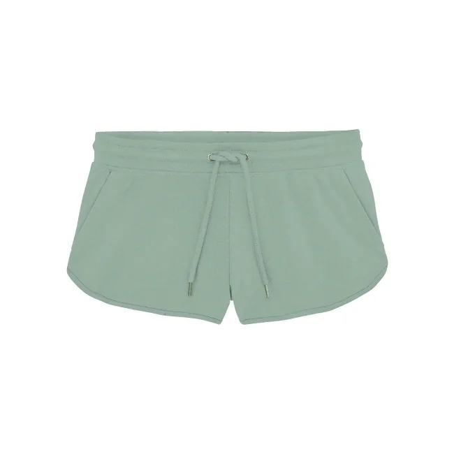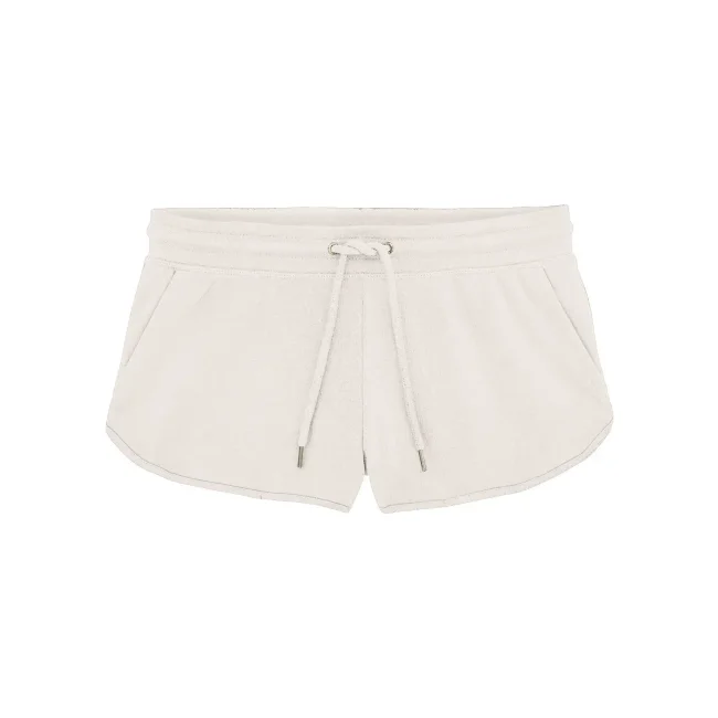 80% cotone, 20% poliestere. Pantaloncini in felpa french terry, interno del girovita e delle tasche in jersey, cordini tondi tono su tono con punta in metallo, occhielli in metallo, finitura con jersey su bordo inferiore e fianchi, impuntura flatlock su girovita e apertura tasche. Etichetta strappabile. Parte esterna: 100% cotone, parte interna: 50% cotone, 50% poliestere.