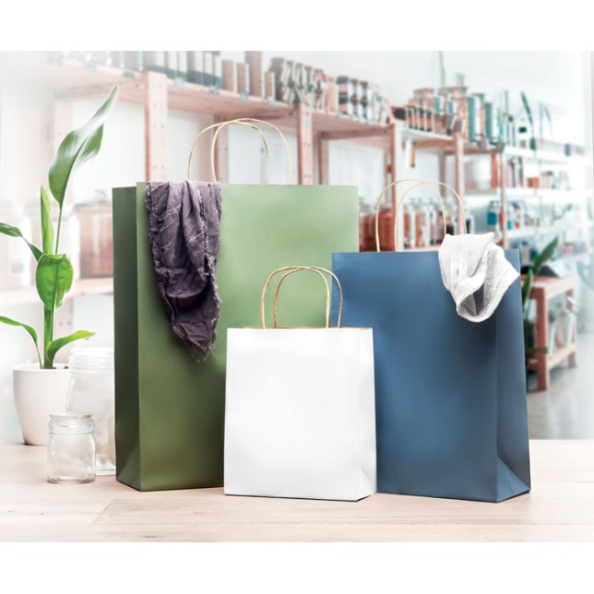 Sacchetto di carta regalo, misura piccola. Un sacchetto di carta è un ottimo modo per presentare un regalo. È anche comodo per trasportare piccoli oggetti per lo shopping. 90 gr / m². FSC®-certified | FSC MIX, P5.3, FSC-C213206