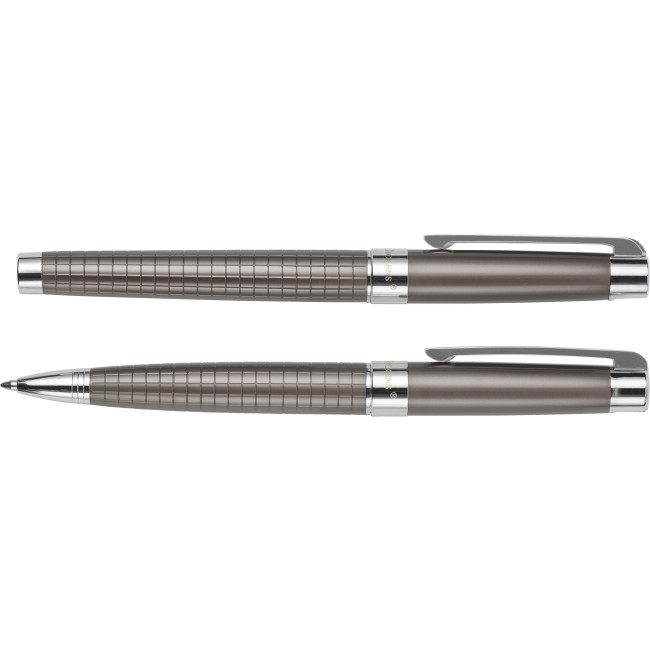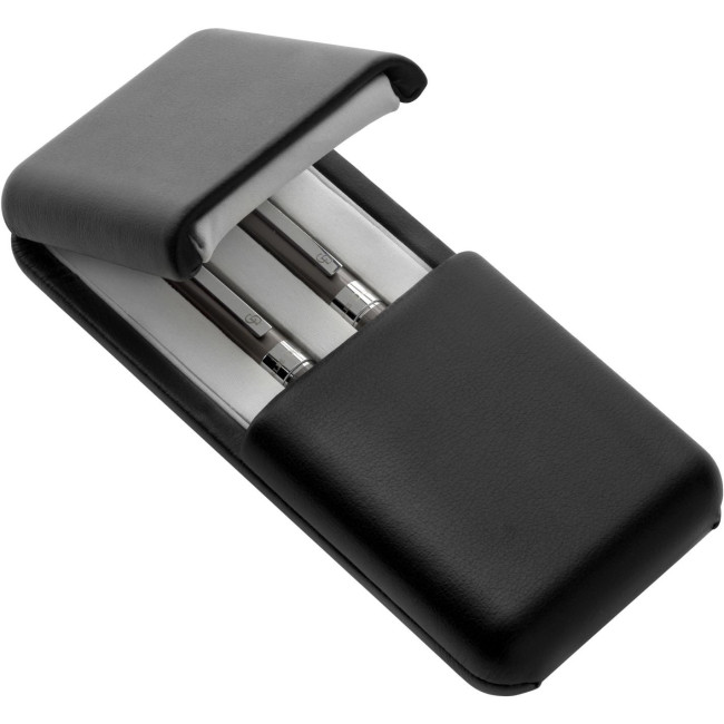 Charles Dickens®, set scrittura in metallo, con penna a sfera e rollerball, refill nero, elegante astuccio PU