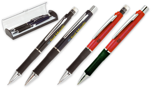Parure composta da penna a sfera e mina, realizzata in plastica e dotata di impugnatura in gomma per una presa confortevole. Viene fornita in un astuccio di plastica, ideale per un regalo o un uso quotidiano.