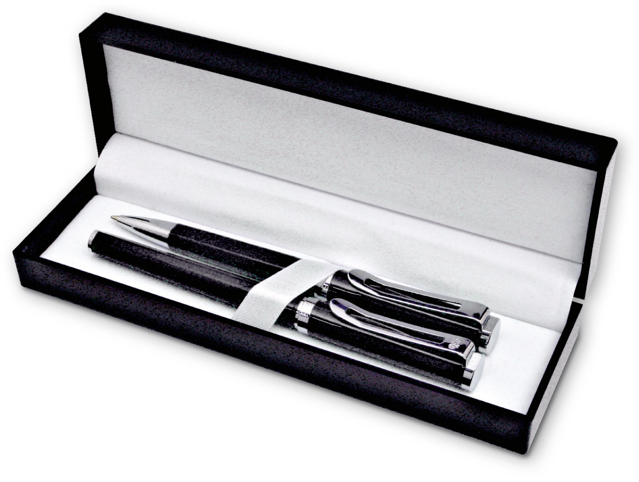 Parure penna sfera e roller. Metallo verniciato nero. Refil ink nero 1.0 mm.
