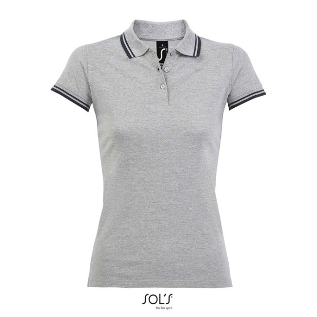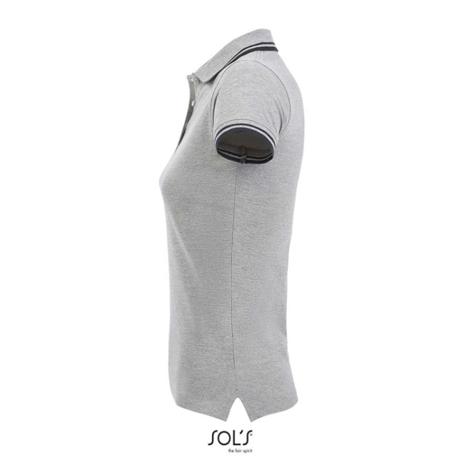 SOL'S PASADENA WOMEN, POLO DA DONNA, 100% cotone Ringspun PIQUÉ 200, collo e polsini a costine 1x1, nastro di rinforzo sul collo, maniche corte, strisce a contrasto su collo e polsini, abbottonatura tono su tono a 3 bottoni, taglio aderente, tagliata e cucita, spacchi laterali, bottone di ricambio sulla cucitura interna. Per informazioni sulla corrispondenza delle taglie, consultare la tabella delle taglie nella sezione documentazione del prodotto.