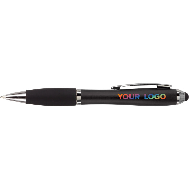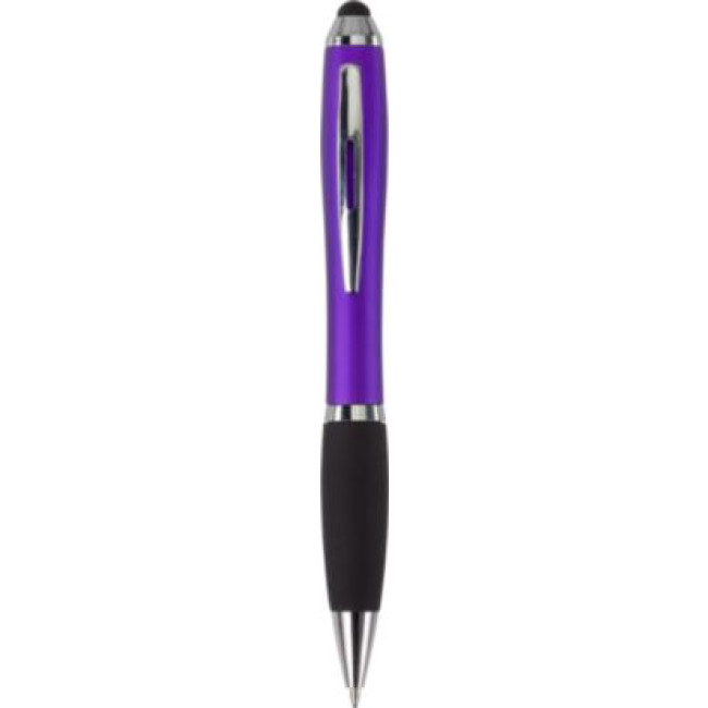 Penna a sfera in ABS capacitiva (compatibile su schermi touch), corpo colorato, impugnatura in gomma, refill nero