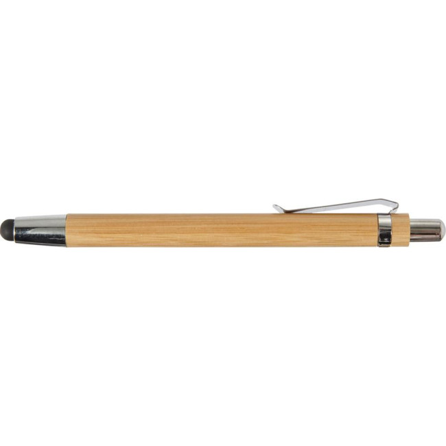 Penna a sfera in bamboo capacitiva (compatibile su schermi touch), meccanismo a scatto, componenti in metallo, refill nero