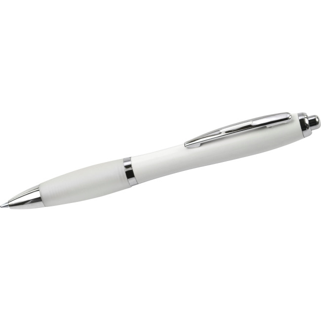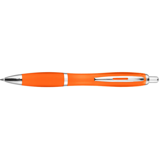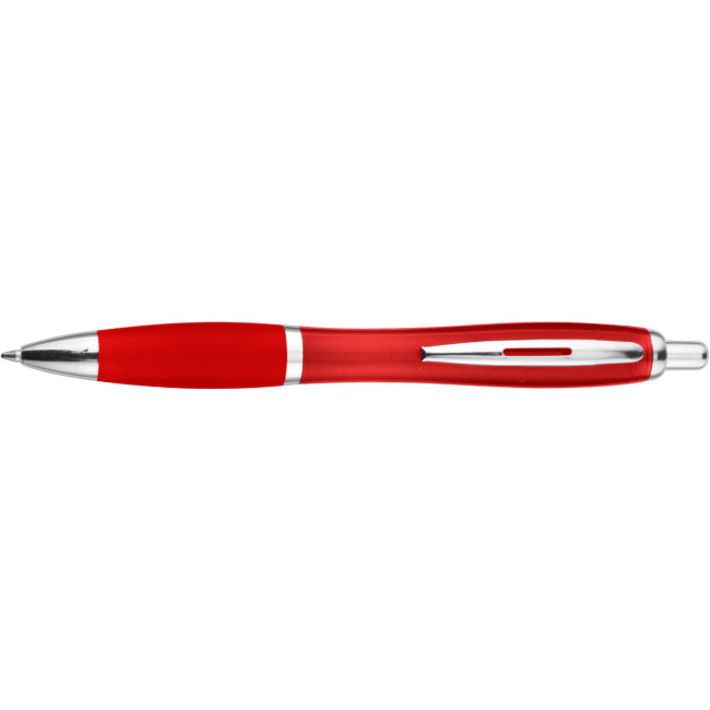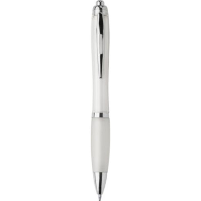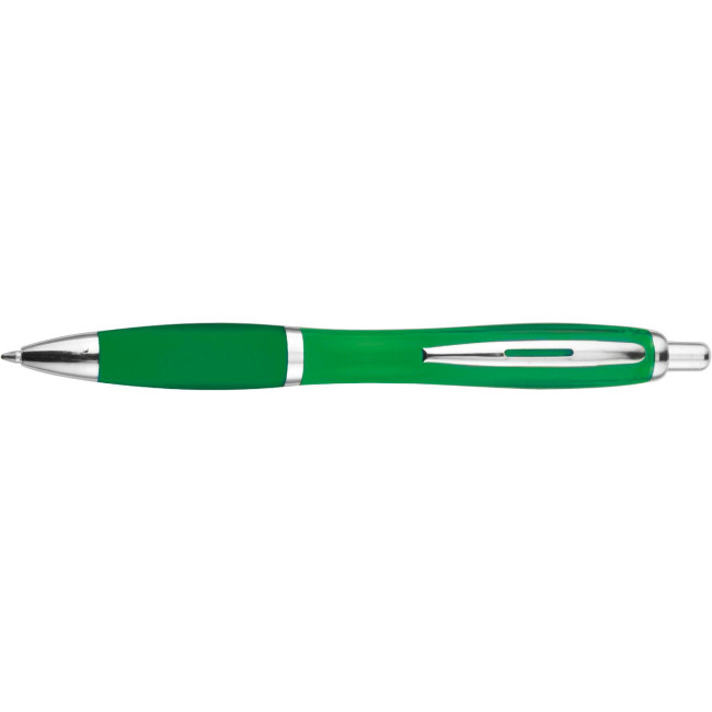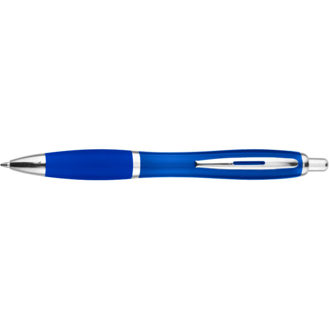 Penna a sfera in ABS riciclato, corpo colorato ed impugnatura in gomma, refill blu