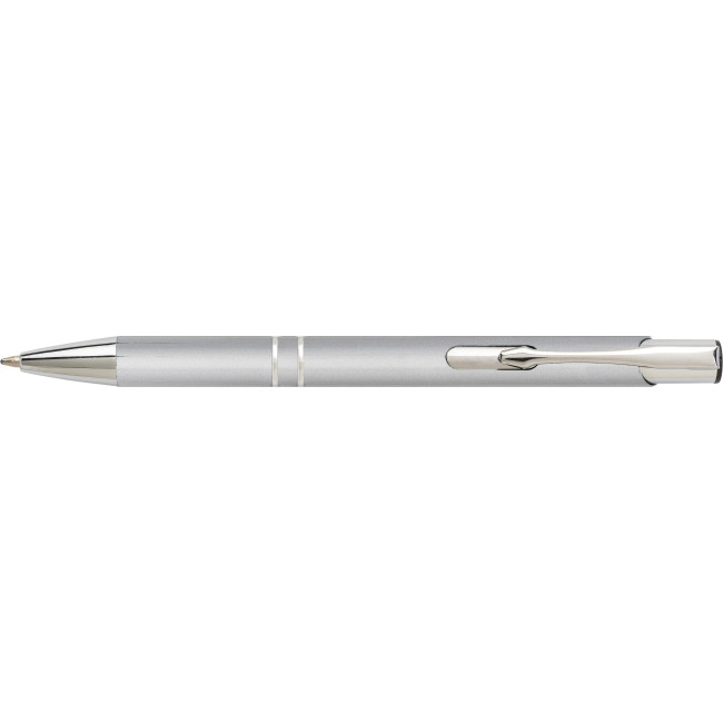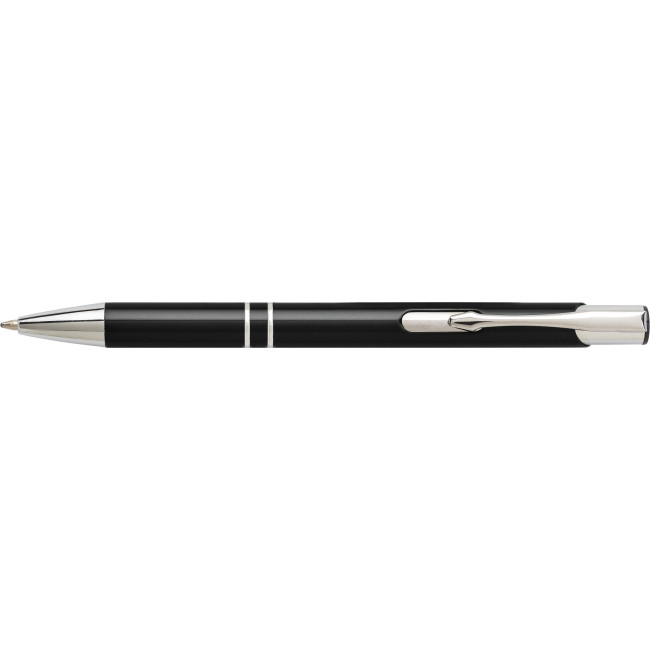 Penna a sfera in alluminio, rivestimento in UV, due anelli decorativi, punta e clip in metallo, refill blu.