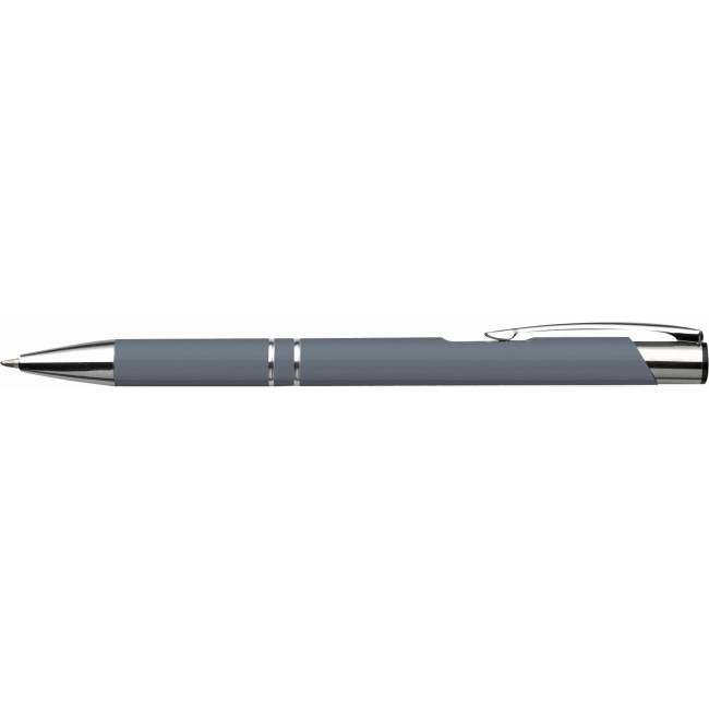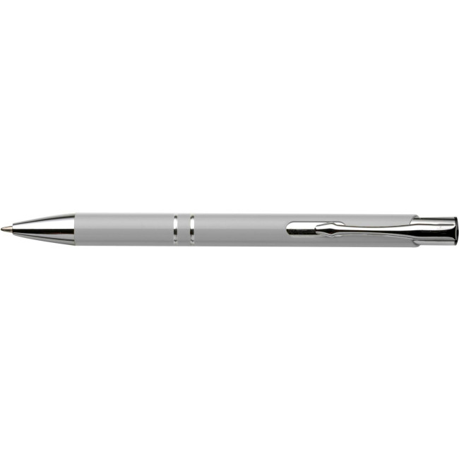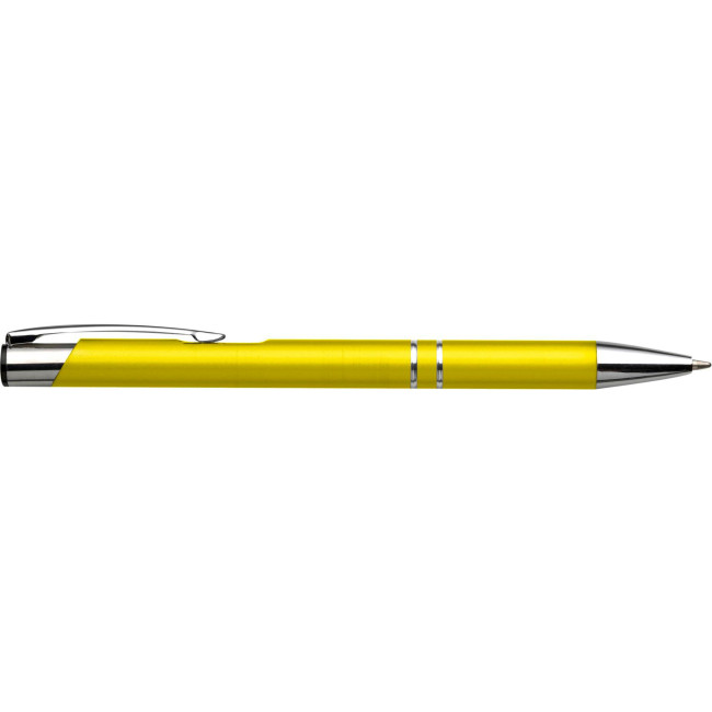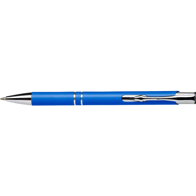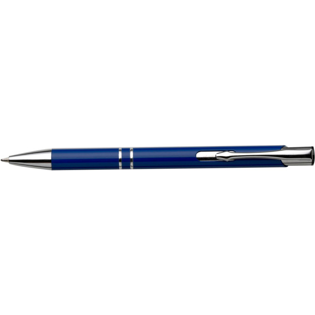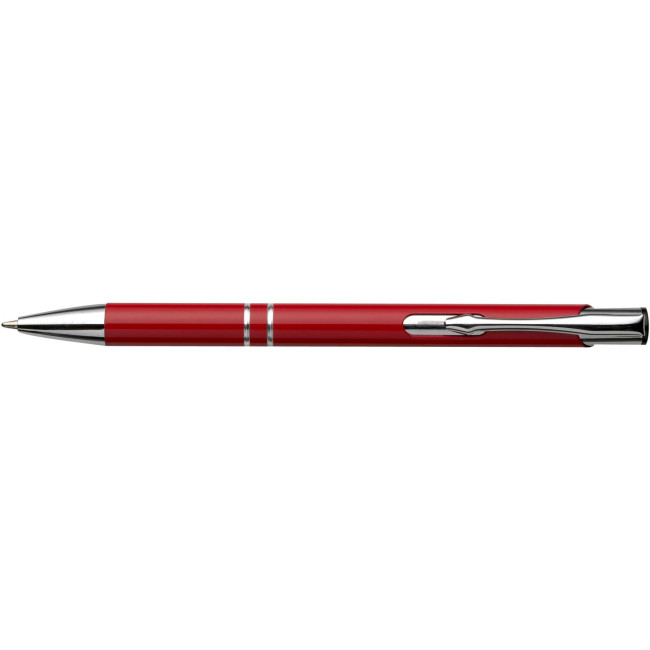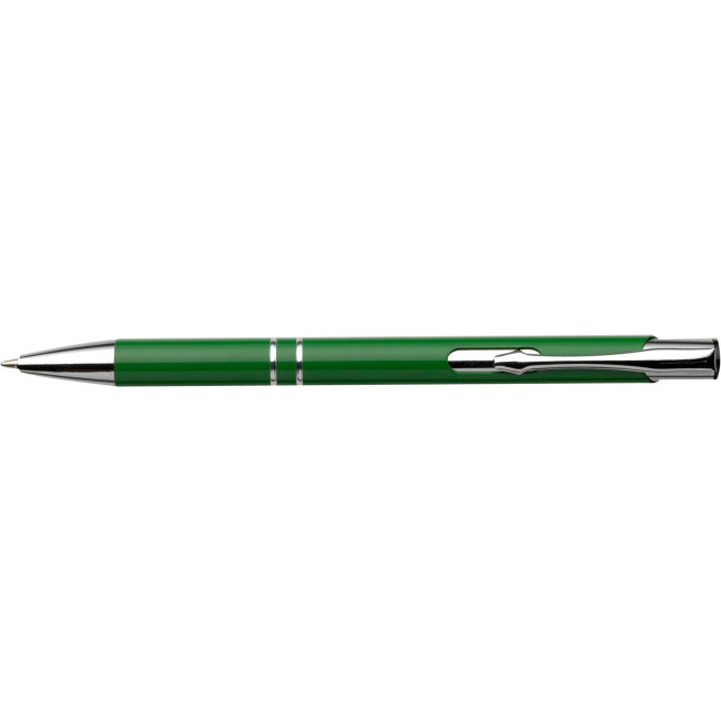 Penna a sfera in alluminio, corpo colorato, due anelli decorativi, punta e clip in metallo, refill blu. Fornito del certificato German Dokumental Ink