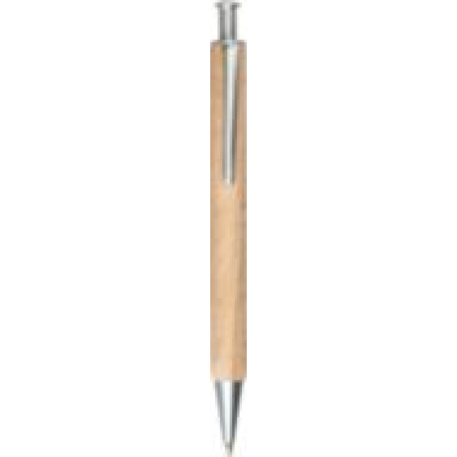 Penna a sfera in legno, meccanismo a scatto, corpo in legno con particolari argentati, refill blu. Fornito del certificato German Dokumental Ink.
