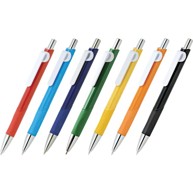 Penna sfera a scatto, fusto plastica. Meccanismo a scatto. Refil blu 1.0 mm.
