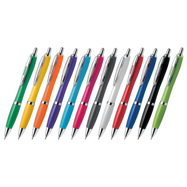 Penna sfera meccanismo a scatto, particolari cromati, refill nero.