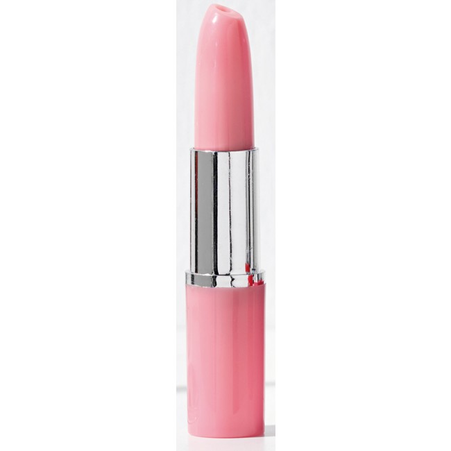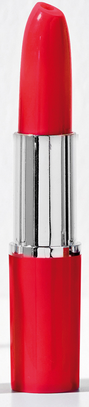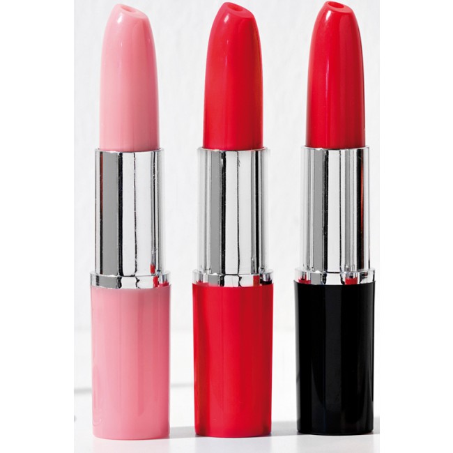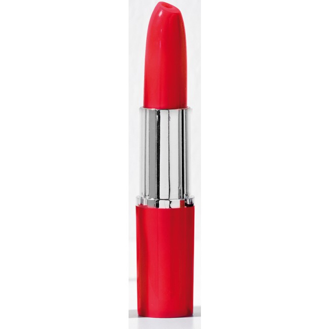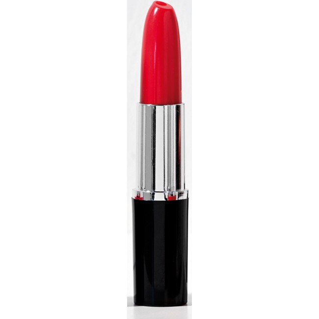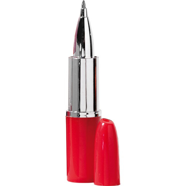 Penna sfera a forma di rossetto refil blu rifiniture colorate.
