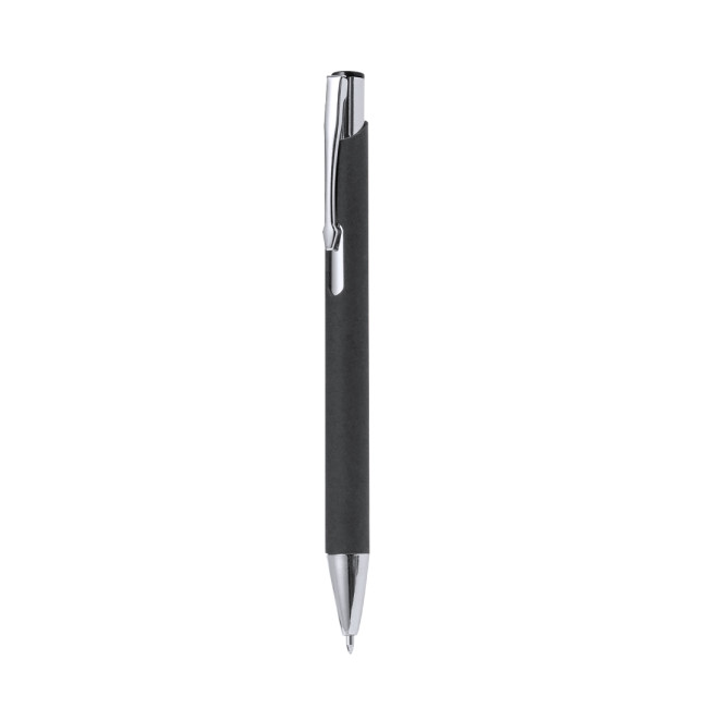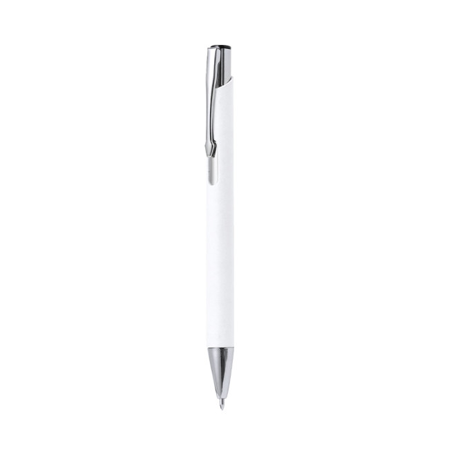 Penna con fusto in carta riciclata e meccanismo a pulsante. Disponibile in un'ampia gamma di colori, questa penna è dotata di inchiostro blu e finiture in metallo, offrendo una soluzione ecologica per la scrittura quotidiana.