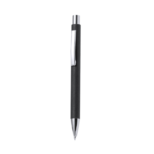 Penna elegante con meccanismo a pulsante, realizzata in carta riciclata con finiture argentate. Dotata di inchiostro blu, questa penna è disponibile in una vasta gamma di colori, combinando stile e sostenibilità.