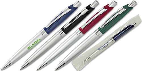 Penna sfera a scatto con fusto in plastica e finiture cromate