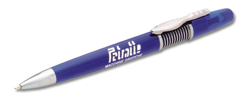 Penna sfera a scatto, colori assortiti, fusto trasparente e rifiniture cromate, refil nero.