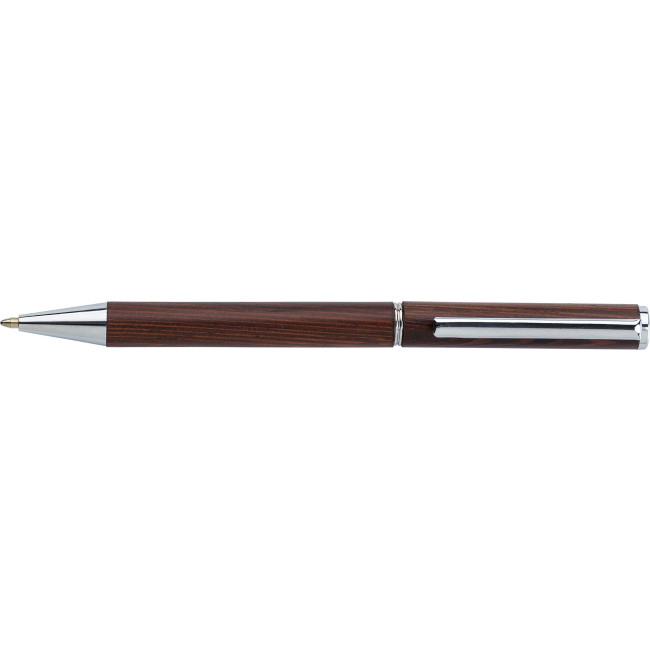 Penna a sfera in legno nero con meccanismo a rotazione e refill blu