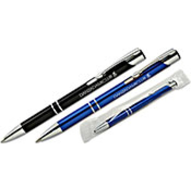 Penna sfera scatto metallo laccato blu particolari in alluminio refil nero confezione polybag